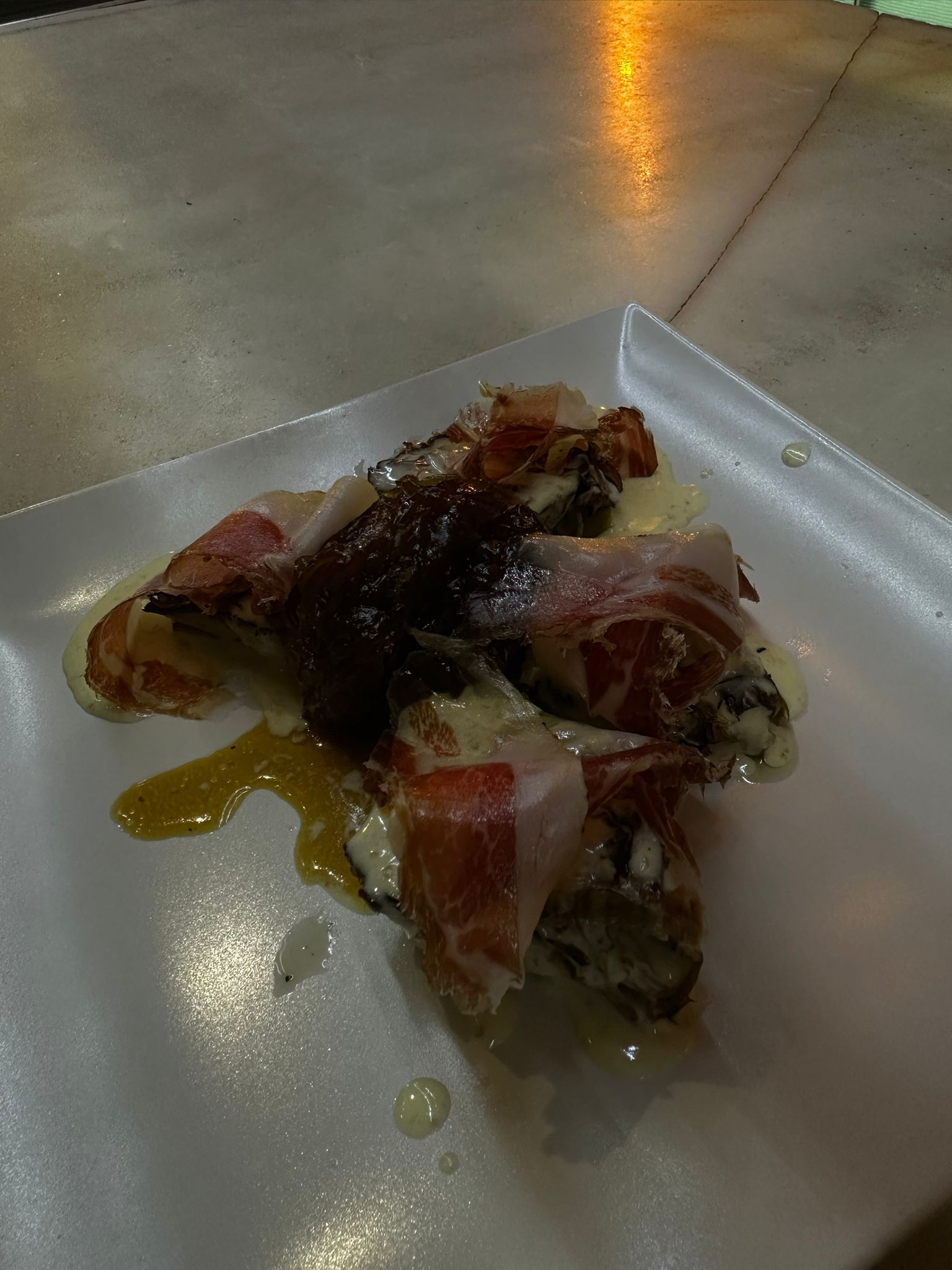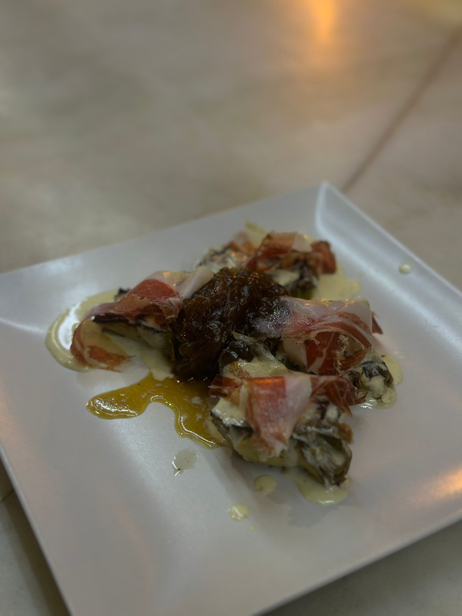 Alcachofas con Jamón y una salsa buenísima. Nos lo recomendó él y fue un acierto