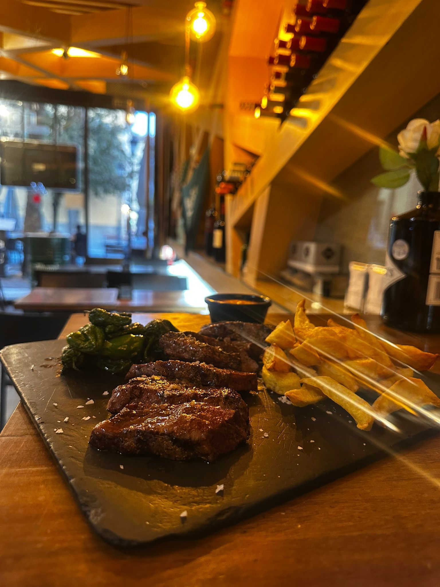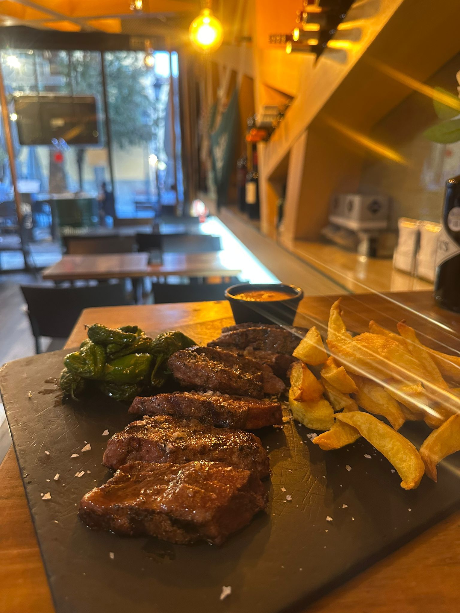 Buenísimo! Estuvimos dos noches en Granada y la dos veces cenamos ahí. La primera vez nos fascinó y quisimos repetir… La comida espectacular, probamos el abanico de 500g de carne, los huevos rotos, el croquetón y los pinchos morunos. Todo de 10! Sin contar las tapas que también estaban buenísimas y el servicio perfecto, Dani un encanto. Repetiremos sin duda alguna cuando volvamos!!!